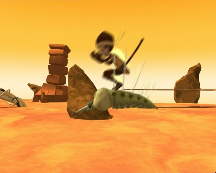 Son sabre est tout autant une arme défensive qu'offensive, le samouraï virtuel s'en sert pour bloquer avec précision les tirs normaux des monstres ou certaines autres attaques (avec moins de succès...)